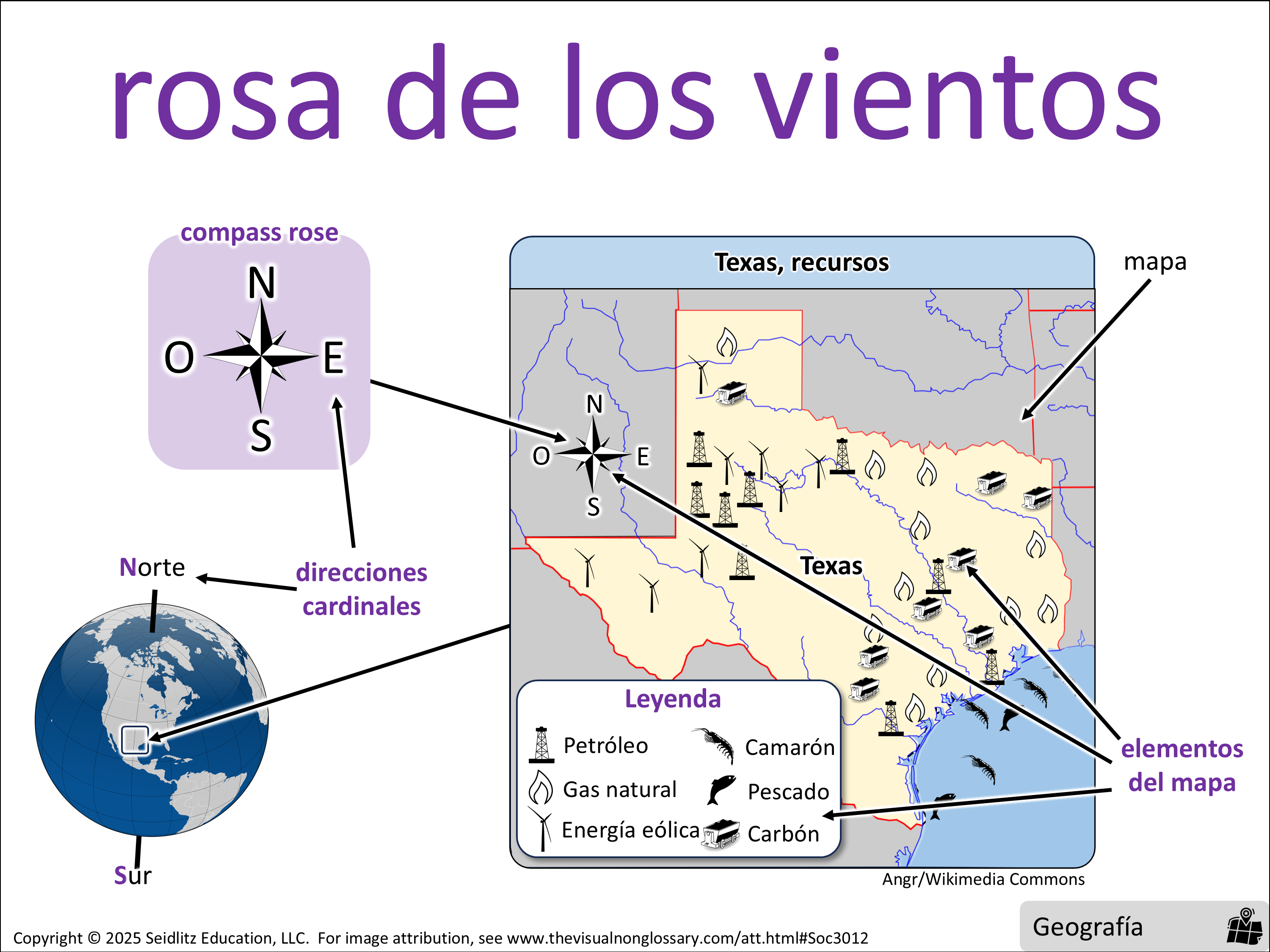 Una rosa de los vientos se relaciona con los elementos del mapa porque…Inferential